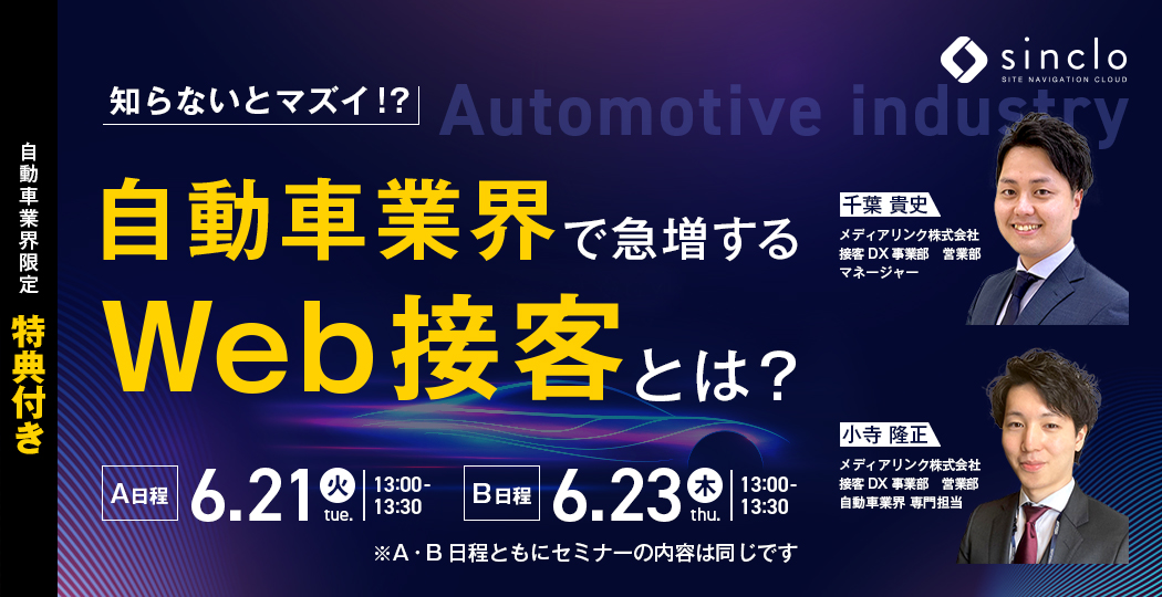 6月21日(火)開催|【自動車業界限定:特典付き】知らないとマズイ!?自動車業界で急増するWeb接客とは?